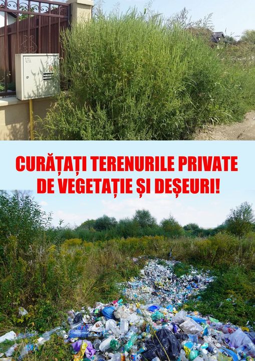 Nu doar cetățenii au această obligație! Atât instituţiile, cât şi firmele care deţin în proprietate, închiriere sau concesiune terenuri virane sau construcţii începute şi nefinalizate în intravilan sunt obligaţi să asigure igienizarea terenurilor prin tunderea periodică în decursul unui an a vegetaţiei şi eliminarea deşeurilor menajere şi nemenajere aflate în incintă.