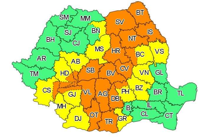 Vor fi averse torențiale, vijelii (rafale de peste 70…80 km/h și izolat 90 km/h) și grindină. În intervale scurte de timp sau prin acumulare cantitățile de apă vor depăși local 35…40 și pe arii restrânse 50…60 l/mp.