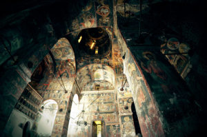 Cele peste 300 de scene ale picturii originale din secolul al XIV-lea reprezintă, conform opiniei specialiștilor, unul dintre cele mai valoroase exemple de artă bizantină din sud-estul Europei, fără a putea fi integrate într-o școală și un curent particular. Pe unul dintre pereți există o pictură unică în lume, care o reprezintă pe Maica Domnului însărcinată.