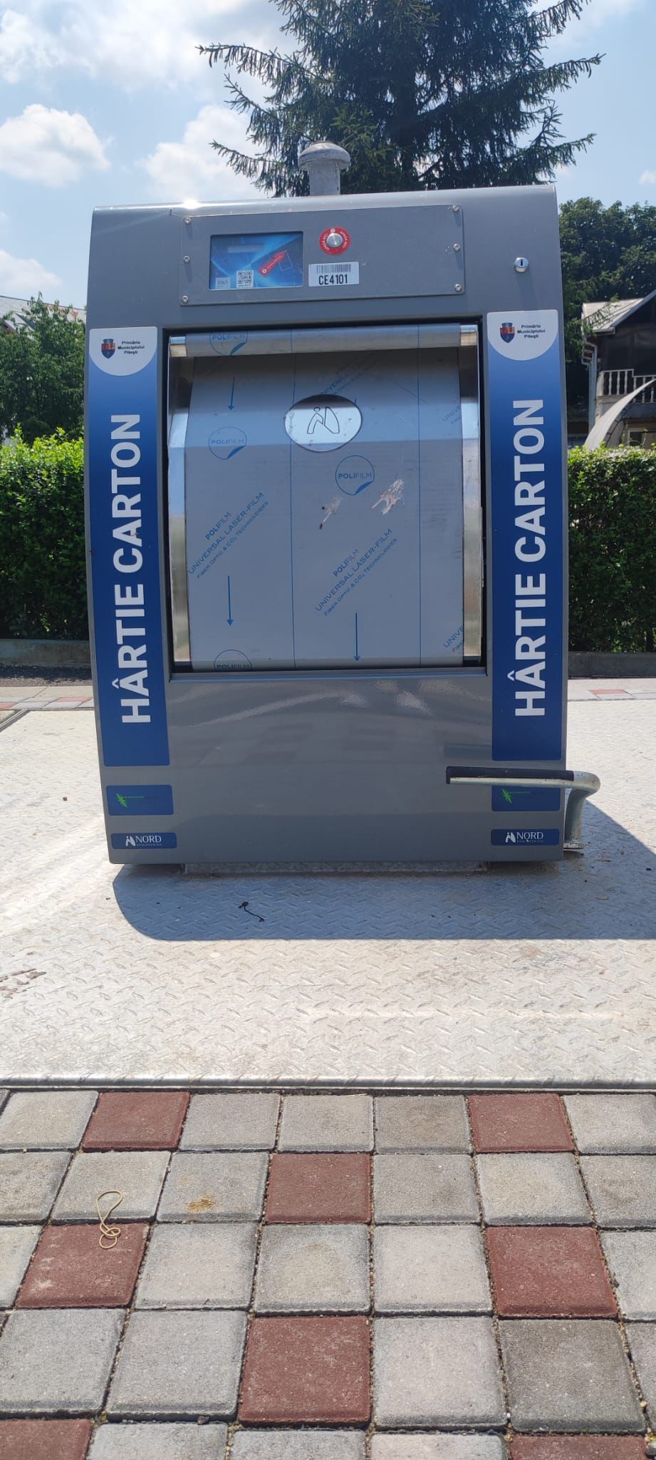 Deșeurile reciclabile de tip hârtie/carton se colectează în containerul inscripționat corespunzător, de culoarea ALBASTRĂ.
