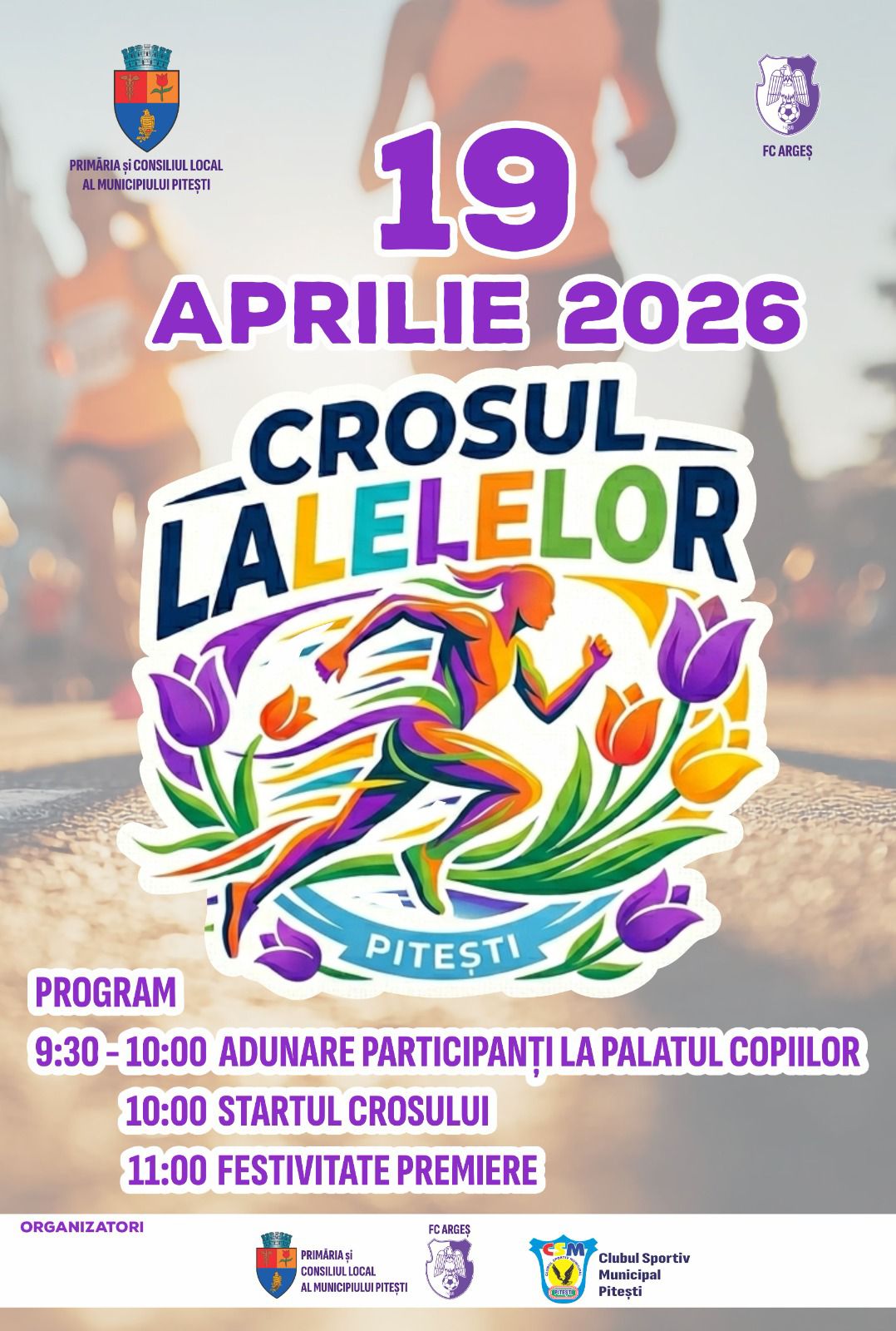 Primăria Municipiului Pitești și Consiliul Local al Municipiului Pitești, în parteneriat cu FC Argeș și CSM Pitești, organizează duminică, 19 aprilie 2026, „Crosul lalelelor”, eveniment sportiv dedicat mișcării în aer liber, inclus în programul manifestărilor prilejuite de Simfonia Lalelelor.
