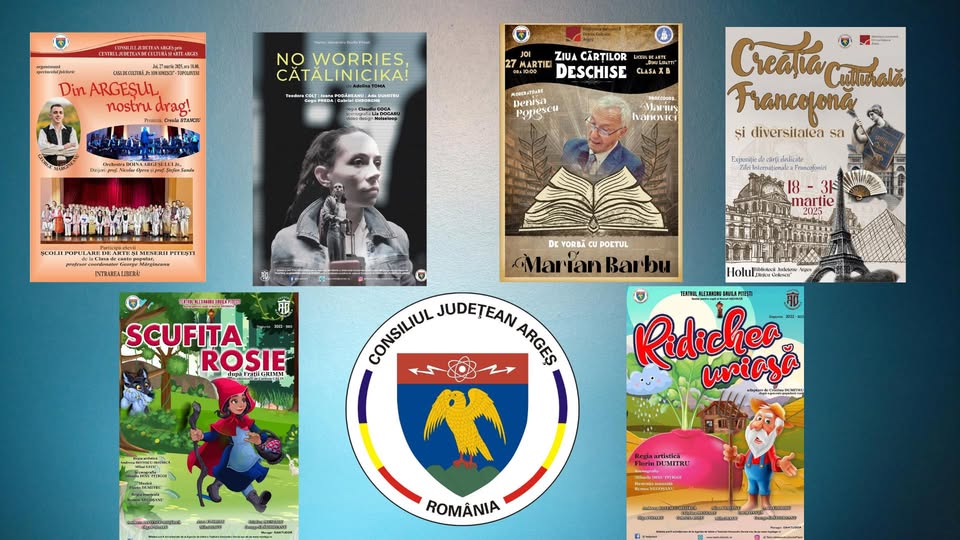 În perioada 22 – 28 martie 2025, Consiliul Județean Argeș și instituțiile sale subordonate organizează o serie de evenimente culturale și artistice menite să aducă mai aproape de public lumea teatrului, literaturii, muzicii și artelor plastice.