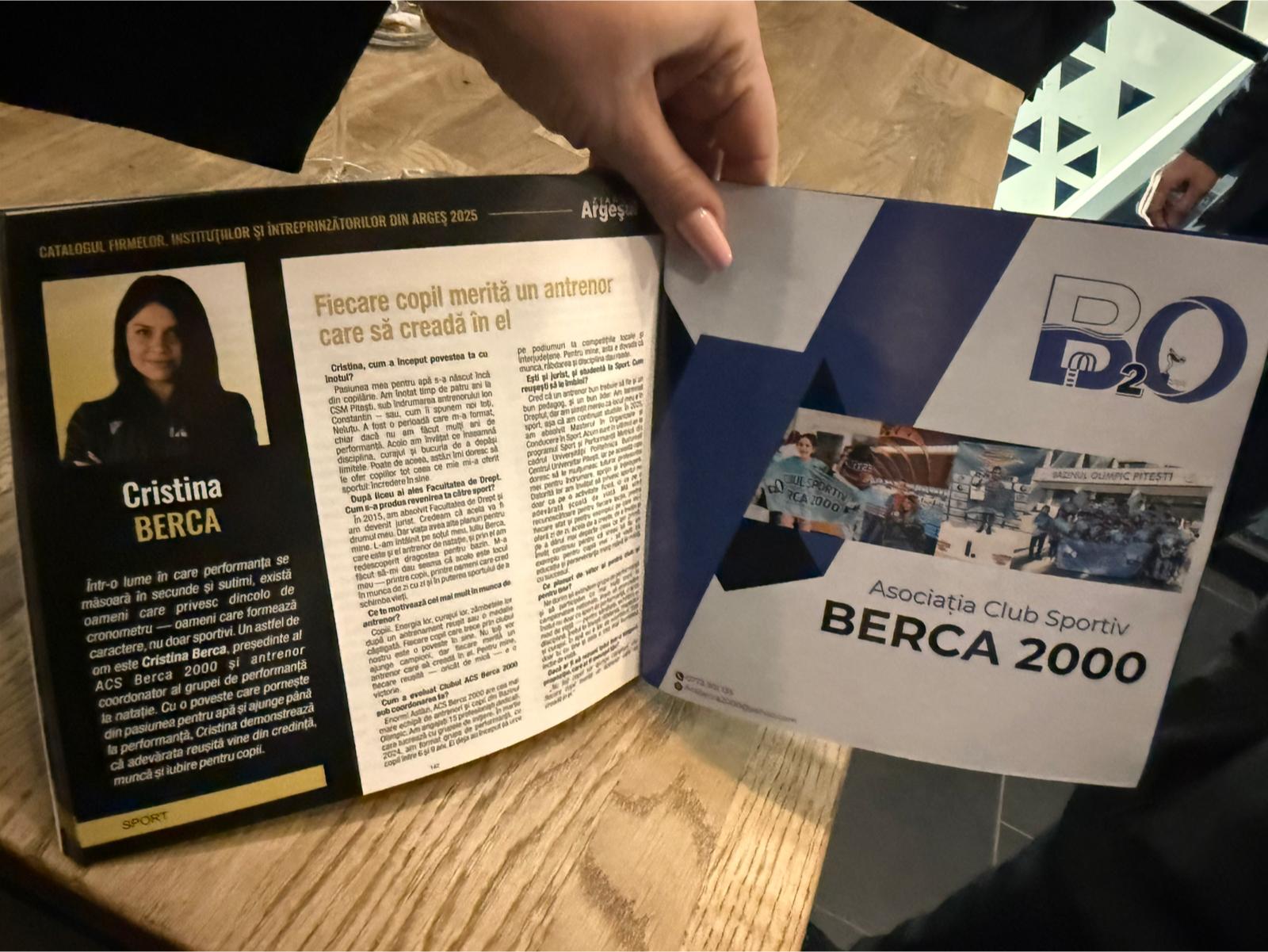 Cristina Berca, președinte și antrenor coordonator al ACS Berca 2000 – B2O, a fost distinsă în cadrul Premiilor de Excelență ale Argeșului, într-o ceremonie care a celebrat performanța și implicarea în comunitate. Evenimentul a marcat recunoașterea oficială a meritelor sale în dezvoltarea sportului de performanță pentru copii.