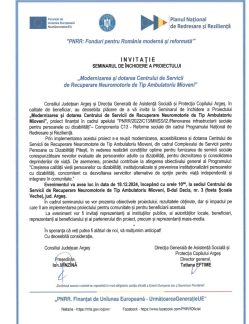 Dotarea spațiilor Centrului de Servicii de Recuperare Neuromotorie de Tip Ambulatoriu Mioveni, în vederea realizării condițiilor optime de desfășurare a procesului de recuperare neuromotorie de tip ambulatoriu, pentru minim 8 persoane adulte cu dizabilități/zi.