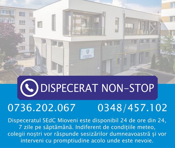 Apelurile către dispeceratul nostru (0736.202.067 și 0348/457.102) vor fi preluate non-stop, iar echipele de intervenție vor acționa prompt pentru remedierea disfuncționalităților survenite.