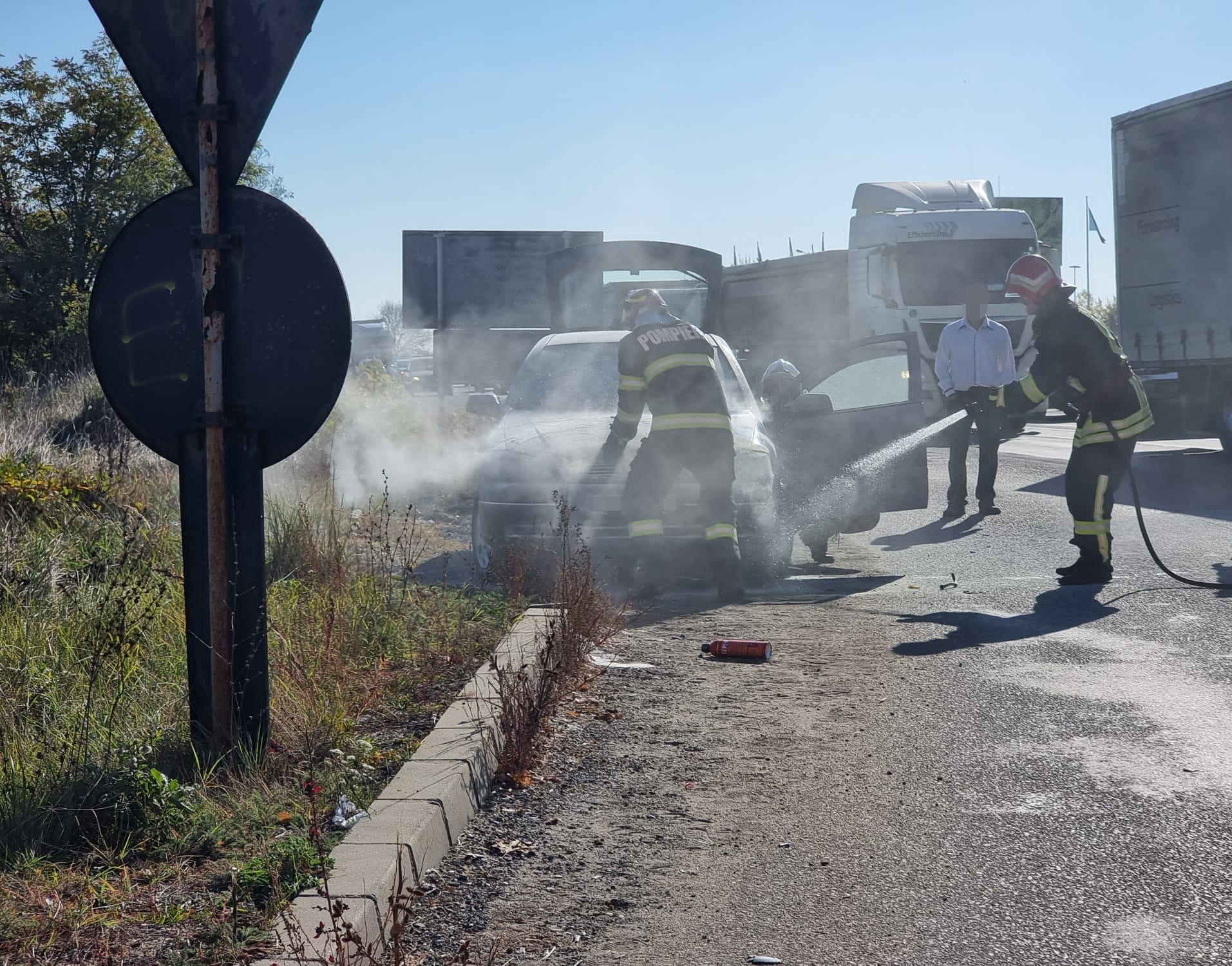 Un incendiu a izbucnit la compartimentul motor al unui autoturism pe raza localității Bradu, DN65 B, zona semafoare Carrefour.