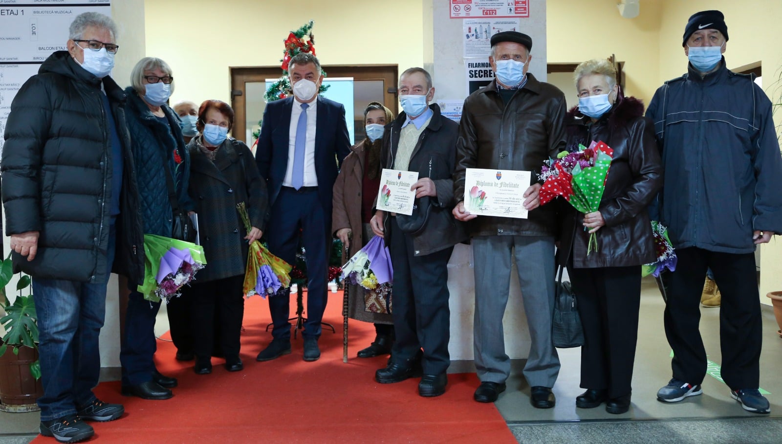 Diplomele de fidelitate și florile le sunt oferite cuplurilor, în semn de apreciere pentru modelul de trăinicie pe care îl reprezintă, de către primarul Cristian Gentea.