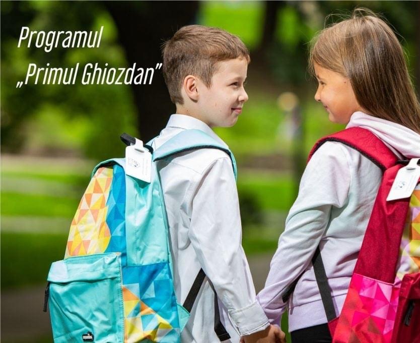 Pachetul cu rechizite școlare „Primul Ghiozdan”, în valoare de 150 de lei, va conține câte un ghiozdan, un caiet dictando A5/48 file, un caiet de matematică A5/48 file, un penar, creioane colorate set de 12 culori, o riglă, set de creioane HB cu gumă (3 buc), o ascuțitoare, un bloc de desen A4, un set de acuarele tip pastilă 12 culori cu pensulă, etichete școlare, o mapă cu buton A4, un caiet de lucru-dezvoltare personal și “Creionul magic”- pentru exerciții grafice și reeditare.