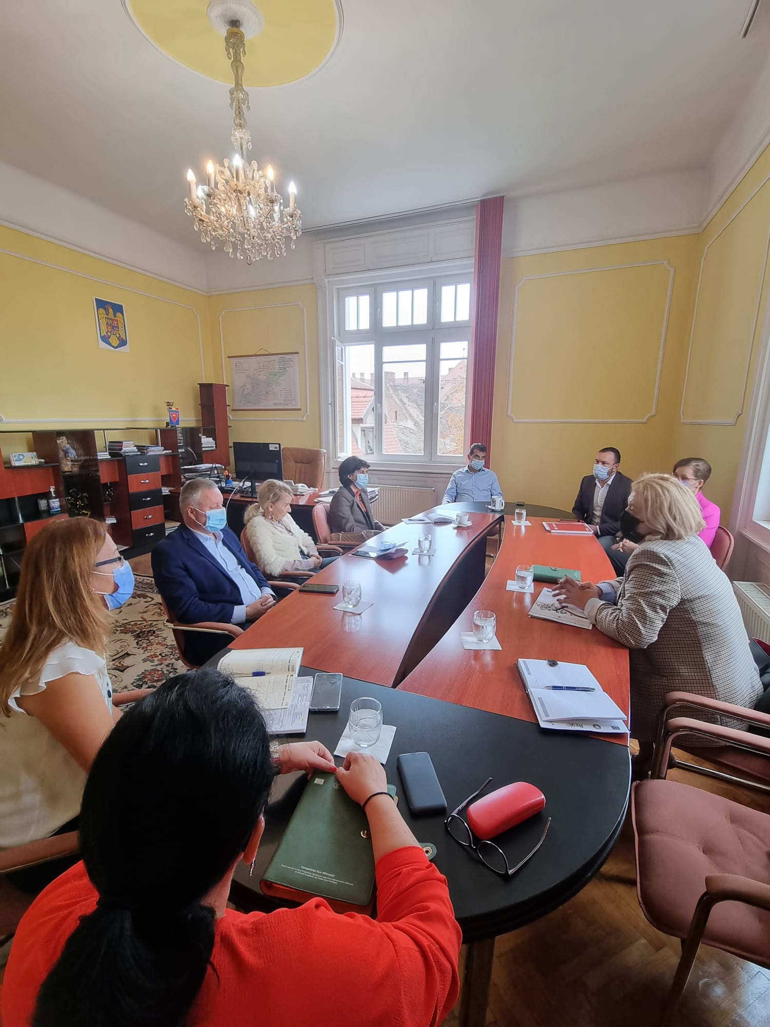Delegația de la Consiliul Județean Argeș a fost primită de vicepreședintele Consiliului Județean Sibiu, Marcel Constantin Luca, administratorul public al județului Sibiu și funcționari din cadrul Direcției Strategii și Proiecte.