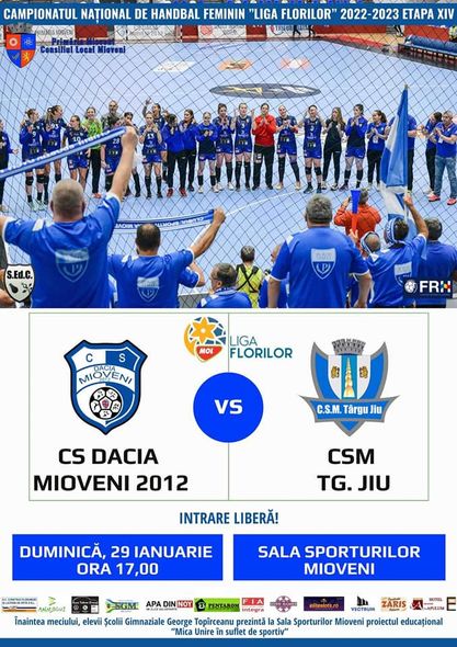 Duminică, 29 ianuarie, ora 17:00, Primăria Mioveni vă invită la un nou spectacol handbalistic de mare intensitate în Sala Sporturilor Mioveni!